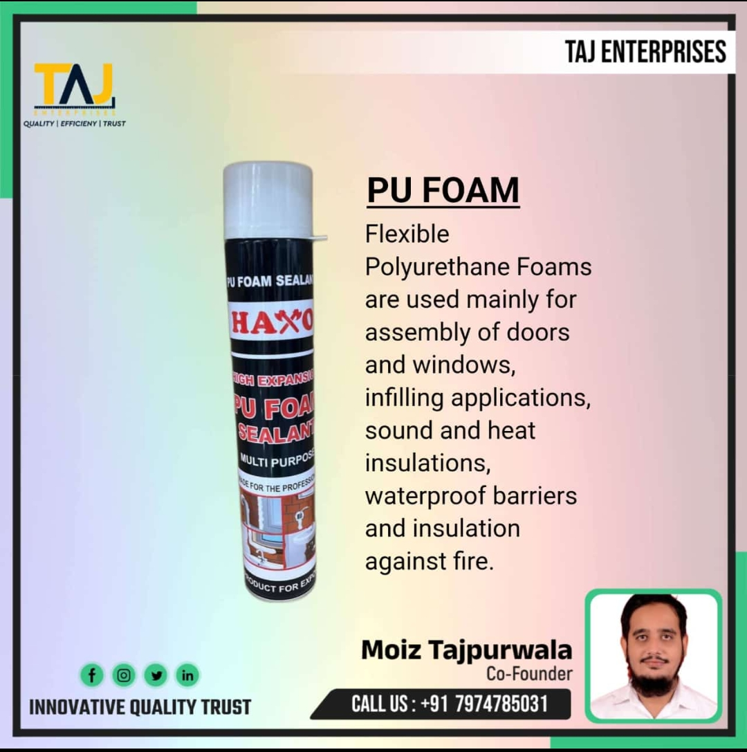 #TAJENTERPRISES #industrialmaterialsuppliers #pufoamspray #silicon #clearsilicon #blacksilicon #haxo #industrialsuppliers #joinindia #madeinindia Polyurethane is a type of polymer offered in both solid and foam form. Specifically, polyurethane foam has an open cellular structure to achieve this form and it can be rigid or flexible. Some of the common types of polyurethane foam are memory foam, high resilience foam and high density foam